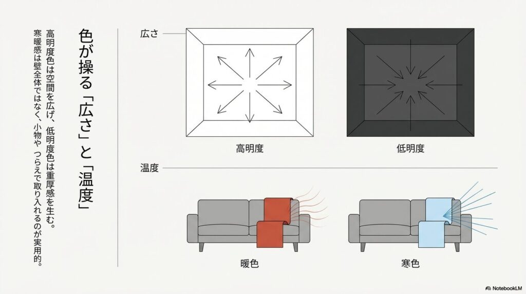 • 色の心理効果のインテリア応用(寒暖感・広さ・軽重感と色の関係)